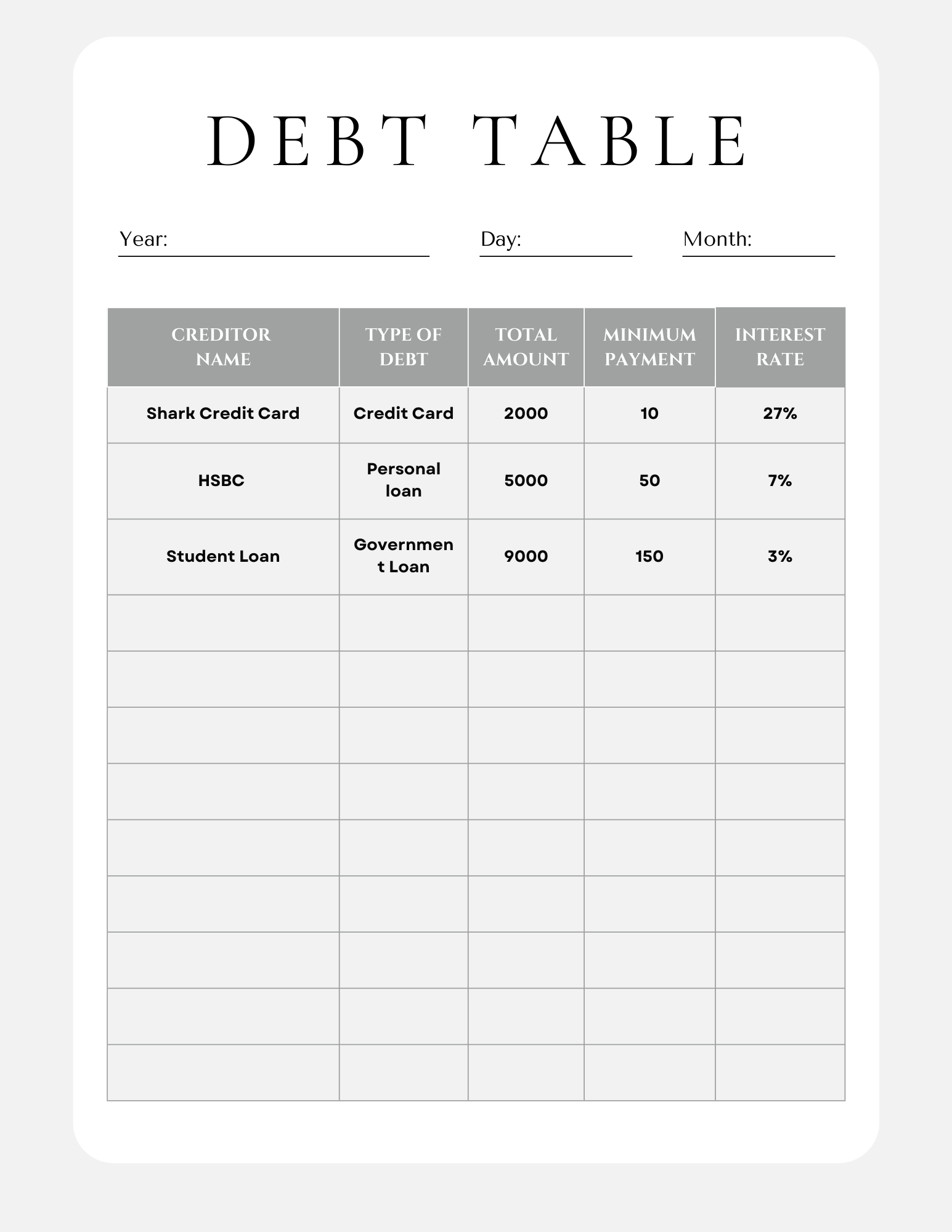 ✅ Customizable Debt Tracker: Organize all your debts in one place and track progress monthly.